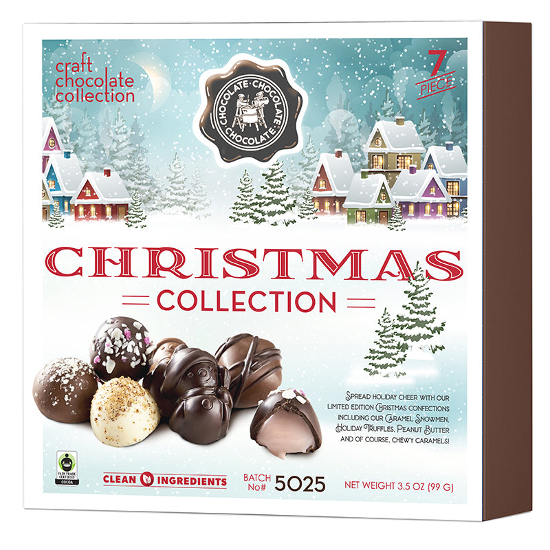 Our MOST POPULAR holiday collection - The Christmas Collection. This hand-packed gift box includes our limited edition holiday favorites - including Peppermint Caramels, Peppermint Truffles, Eggnog Truffles, Gingerbread Truffles, our famous miniature caramel snowmen. We also paired together our Peanut Butter Smoothies and Peppermint Caramels. chocolates are handmade, hand decorated and hand packed ~ the perfect holiday gift!