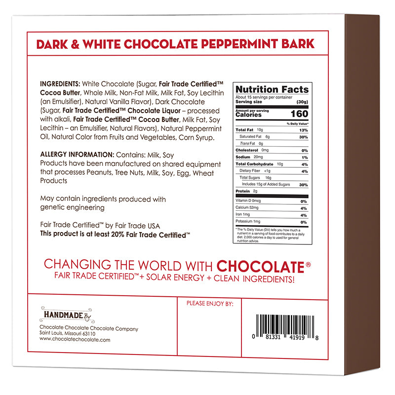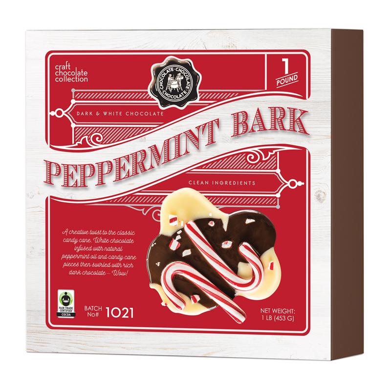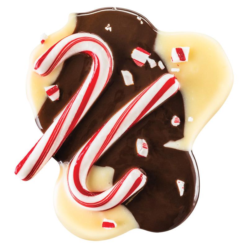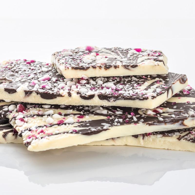 A creative twist to the classic candy cane. White chocolate infused with natural peppermint oil and candy cane pieces and swirled together with rich dark chocolate – wow!